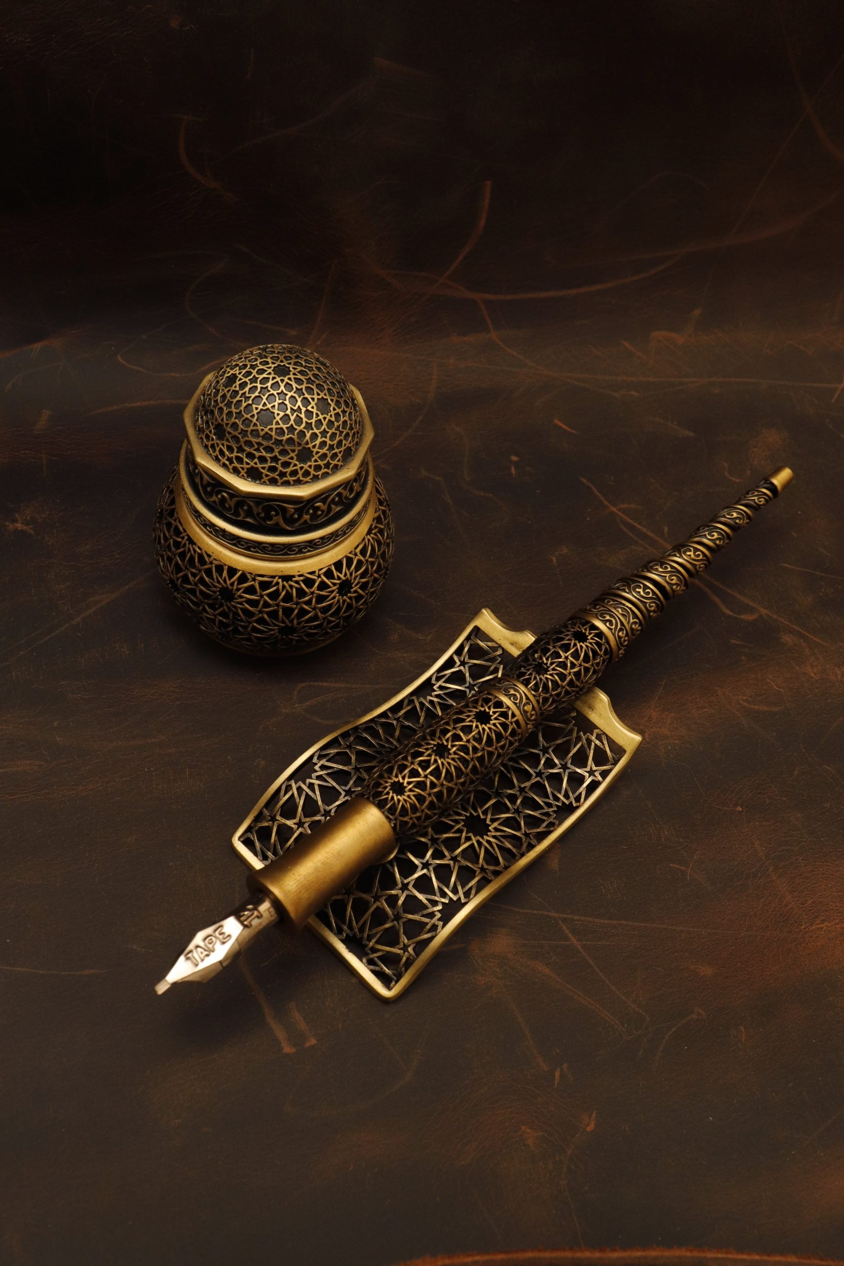 Our pen stand, which we designed with inspiration from Seljuk decorative art, has a dynamic appearance with gradual transitions in the geometric pattern arrangement. When viewed from the side, the "s" curve is given to provide balance on both sides, creating a decorative appearance.