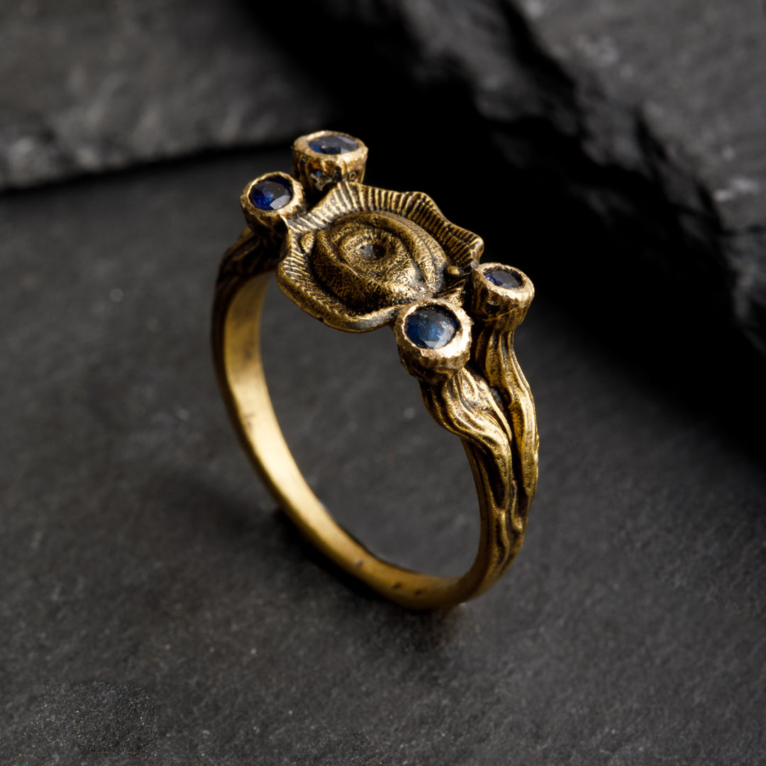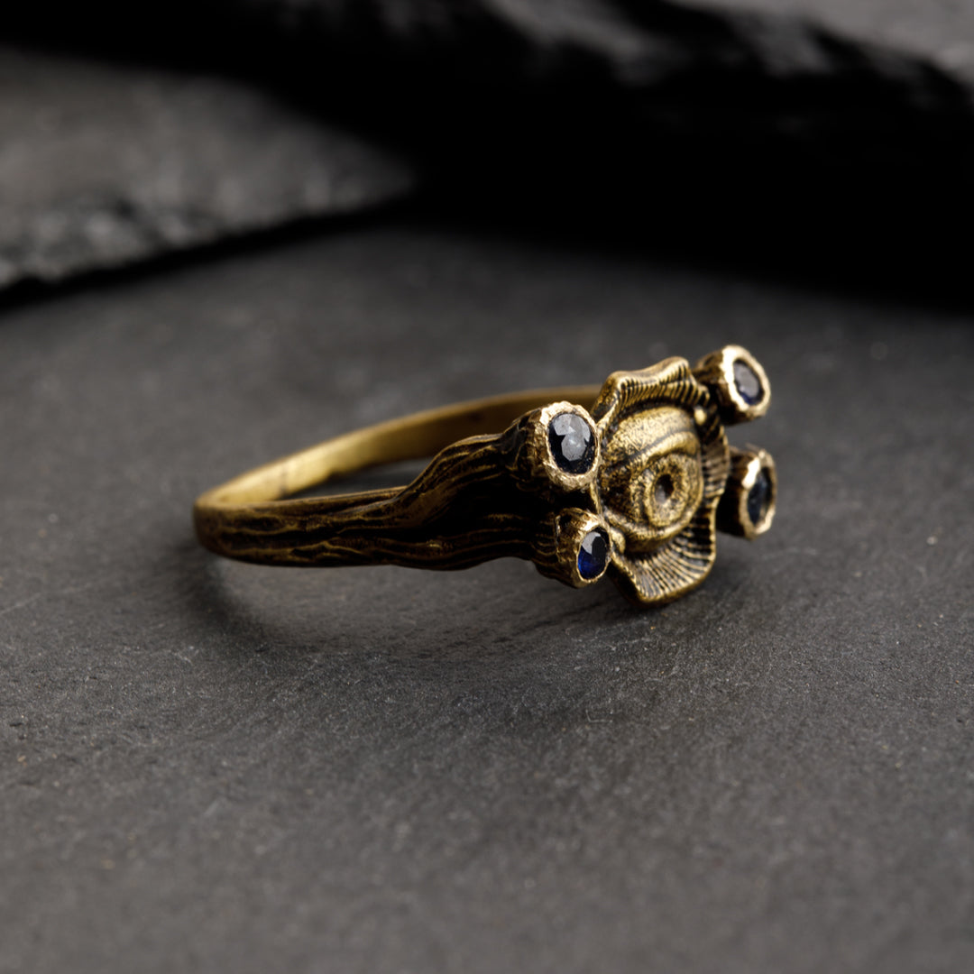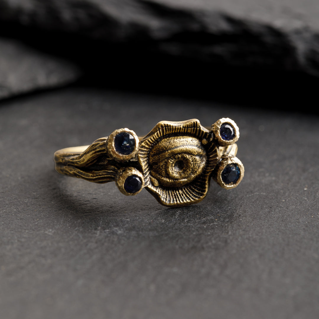 We created an amorphous form and designed it with eyes of various sizes and directions. We incorporated aesthetics into the design. You can wear the ring in either direction. The connection part of the ring is adjustable. This part is designed to be usable.