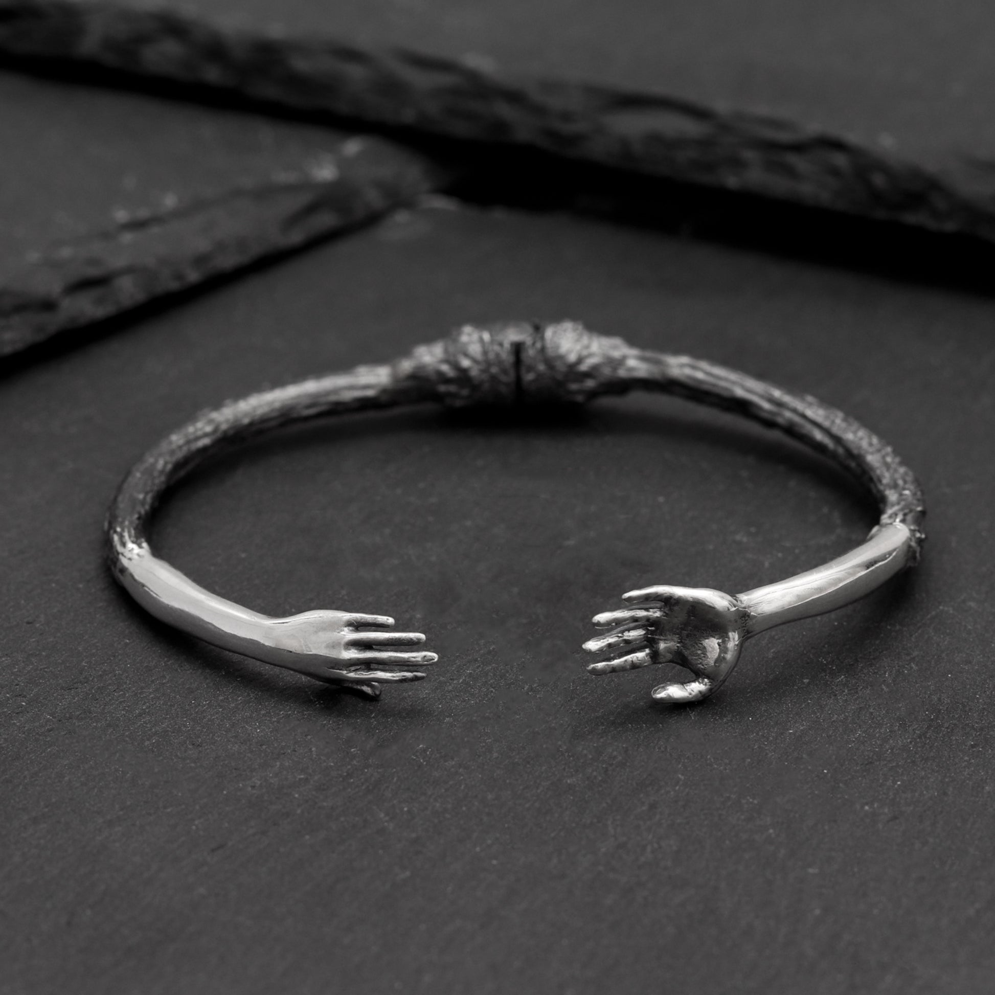 It is possible to infer many meanings as a form of posture. You can find love, invitation and compassion in the Reaching Hands Bracelet.