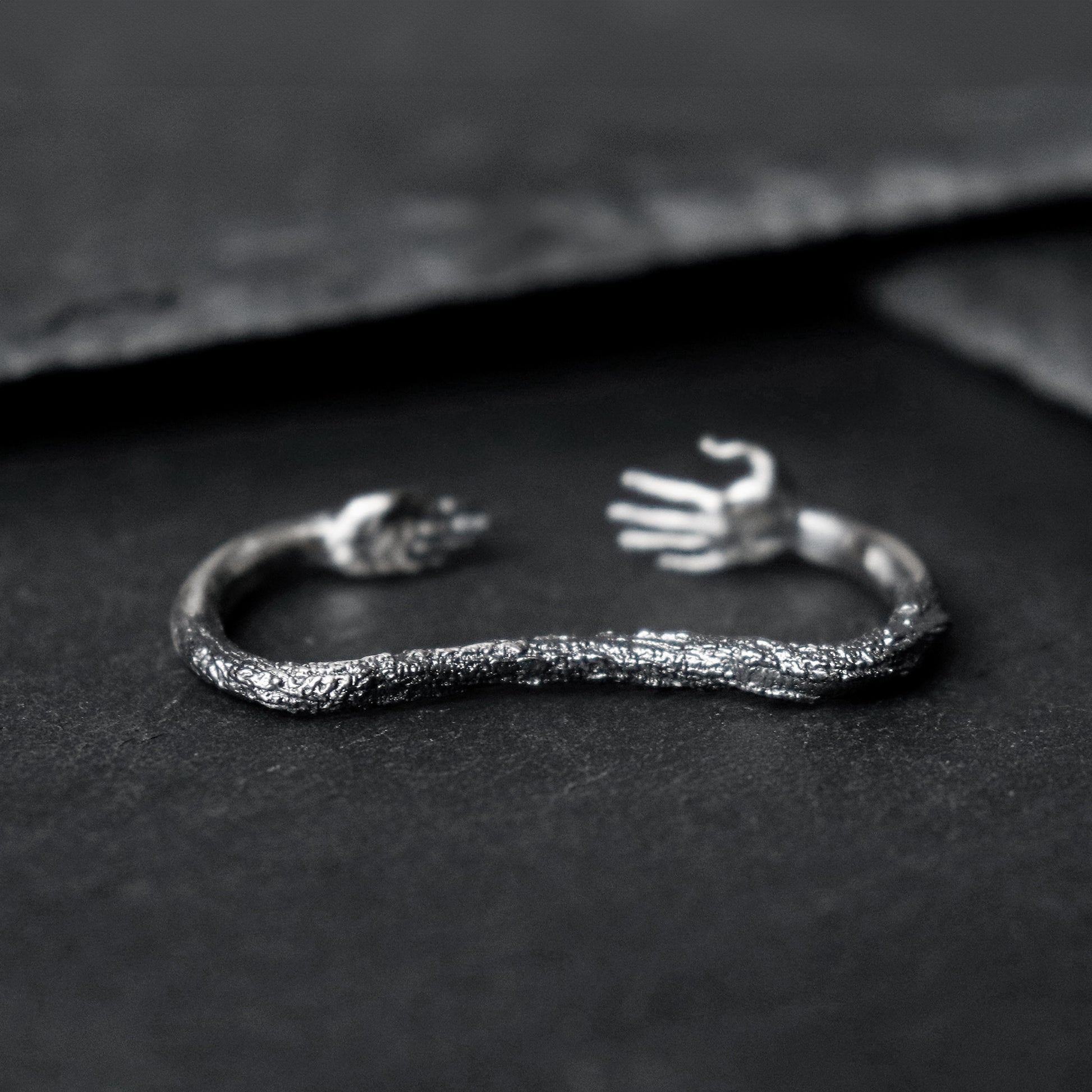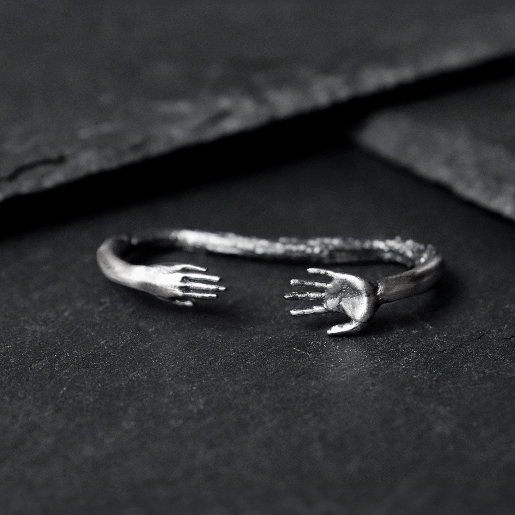 It is possible to infer many meanings as a form of posture. You can find love, invitation and compassion in the Reaching Hands ring.