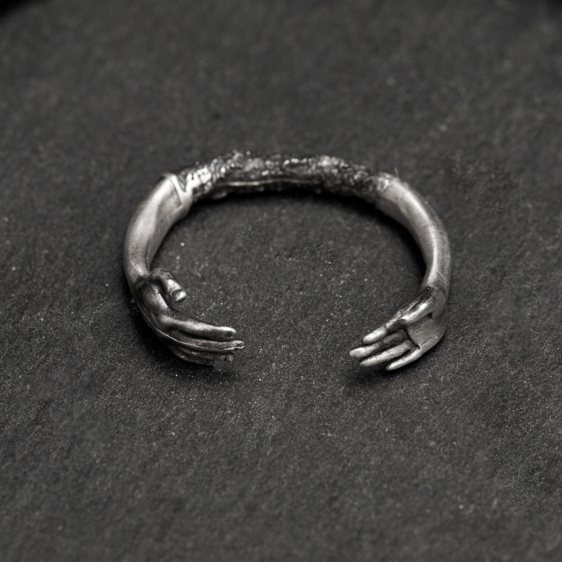 In this ring, two arms, one male and one female, coming from a tree branch, referring to the earth, reach out to each other. It tells how the love people feel for each other is both based on solid foundations and how they constantly strive to achieve it. It is a ring that cannot be worn by holding outstretched hands together.