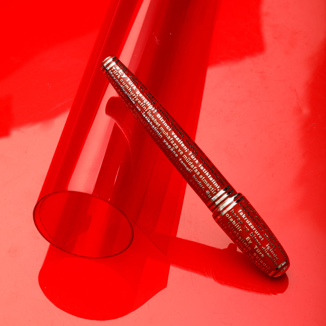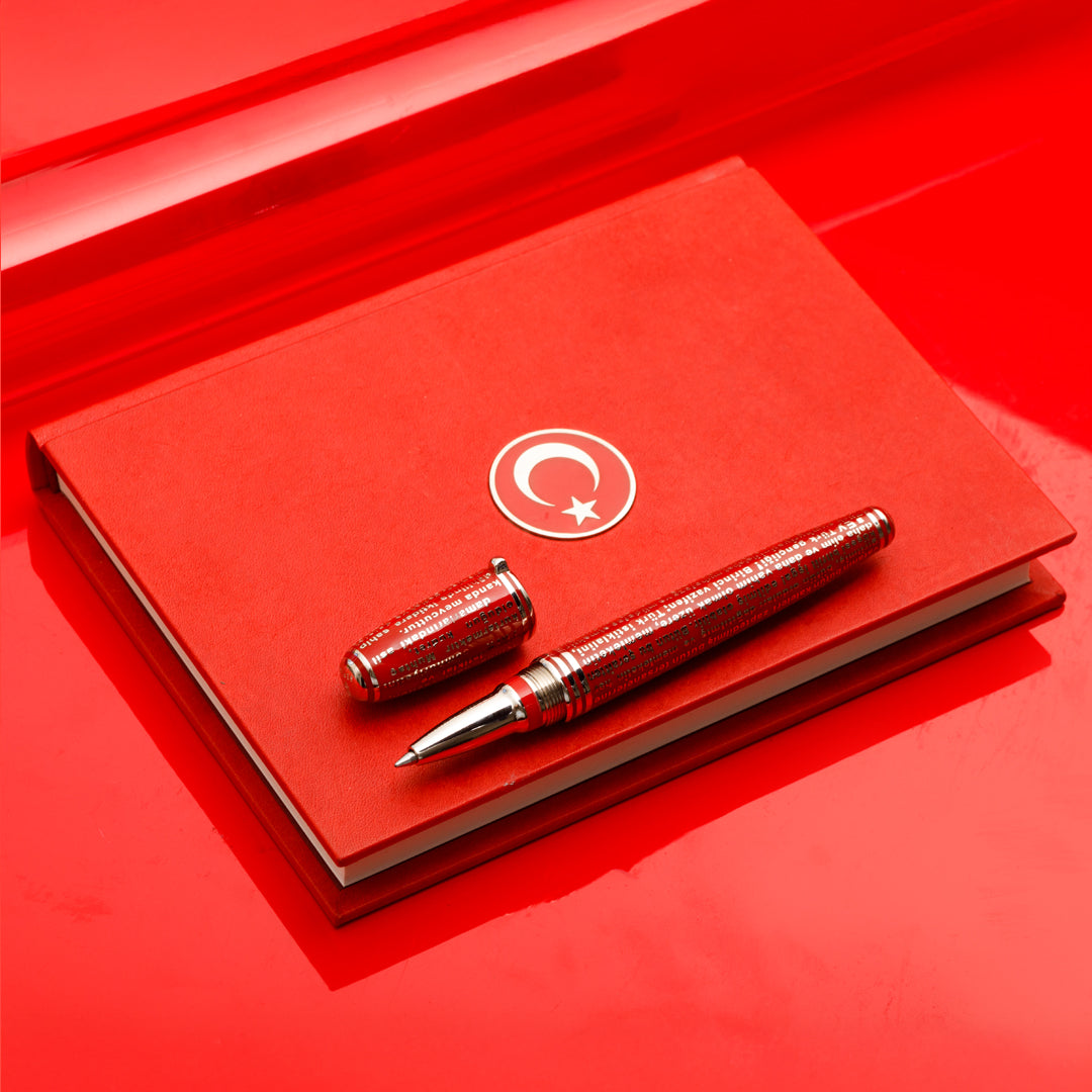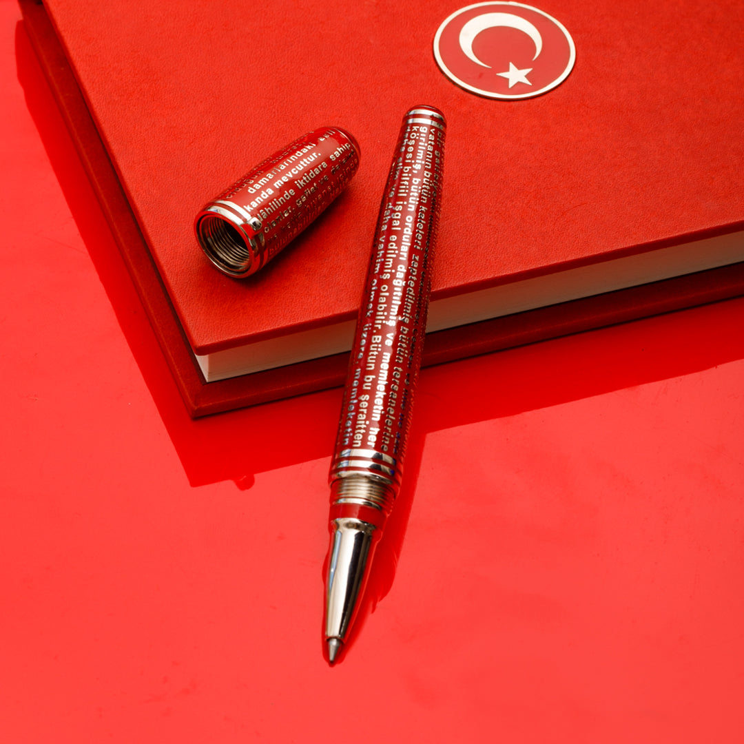 Bu özel tasarım roller kalem, Gençliğe Hitabe’nin ilham verici ruhundan esinlenerek üretildi. Cumhuriyetimizin temel değerlerini ve gençliğe bırakılan en büyük emanet olan istiklal ile istikbali simgeleyen bu kalem; yalnızca bir yazı aracı değil, aynı zamanda sorumluluk ve umudu hatırlatıcı bir anlam taşımaktadır.