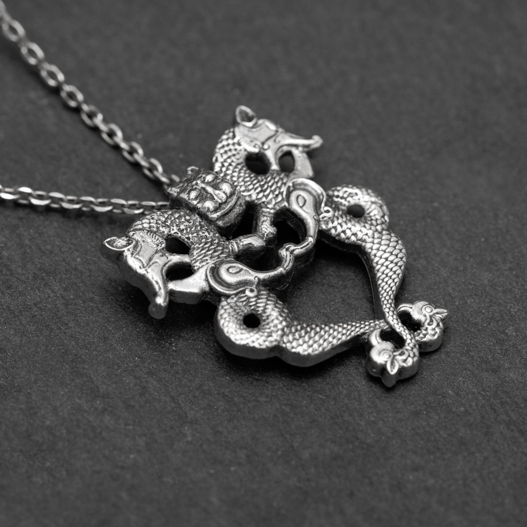 ”İkiz Ejderler” ; Anadolu Türk-İslam mimarisinin güzel bir örneği olan Cizre Ulu cami ana kapısında yer alan tokmaklarından uyarlanarak ortaya çıkartık. Ejderler birbirine sırtlarını dönmüş ellerini birbirine dayamış, gövde kısımları düğümlü, kuyruk kısımlarının uçları birbirine dolanmıştır. Bu kuyruk kısımları sivri kulakları ve gagaları, yuvarlak gözlü, kartal başıyla tamamlanmıştır. Orta kısımda ise stilize edilmiş aslan başı bulunur. Ejder motifi bir çok kültürde yer alır.