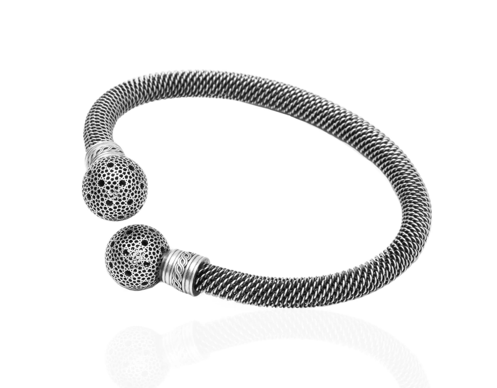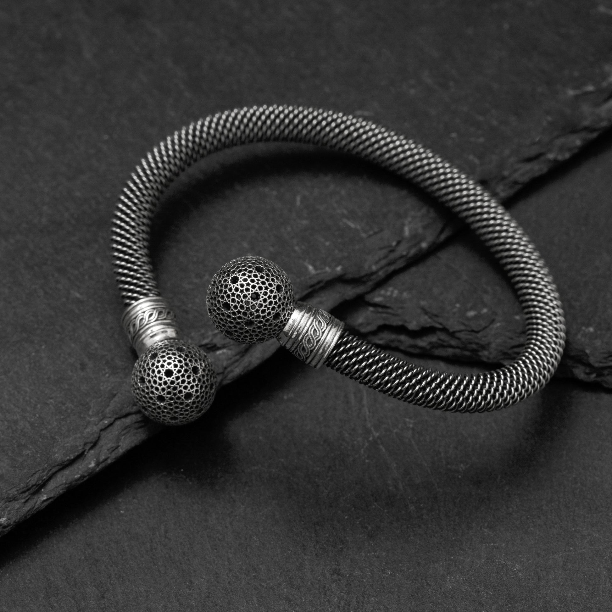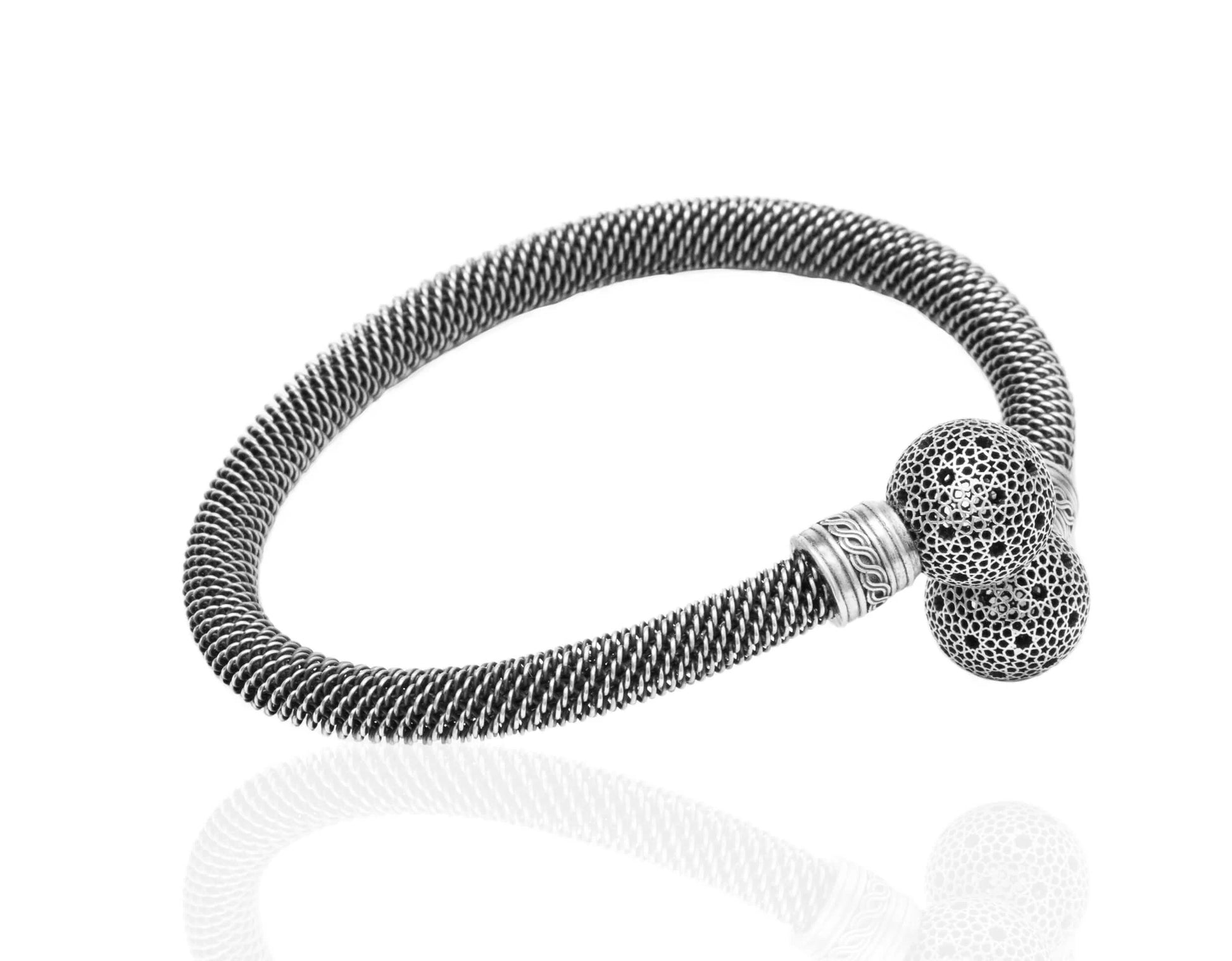 -Bileklik 925 ayar gümüş teller ile elde örülmüştür.
