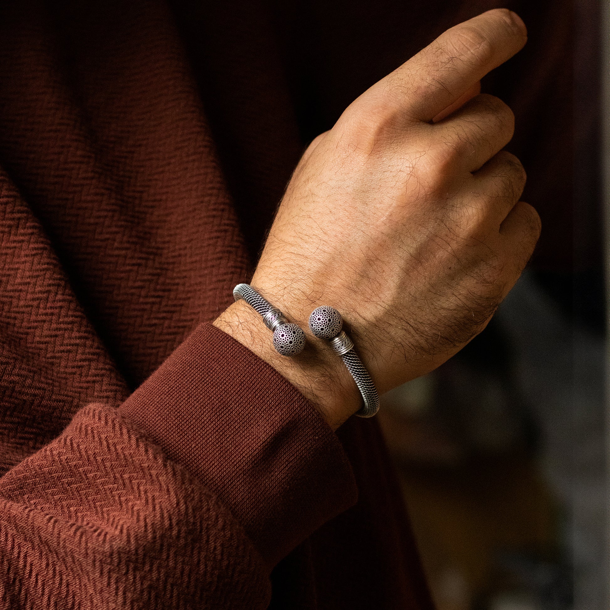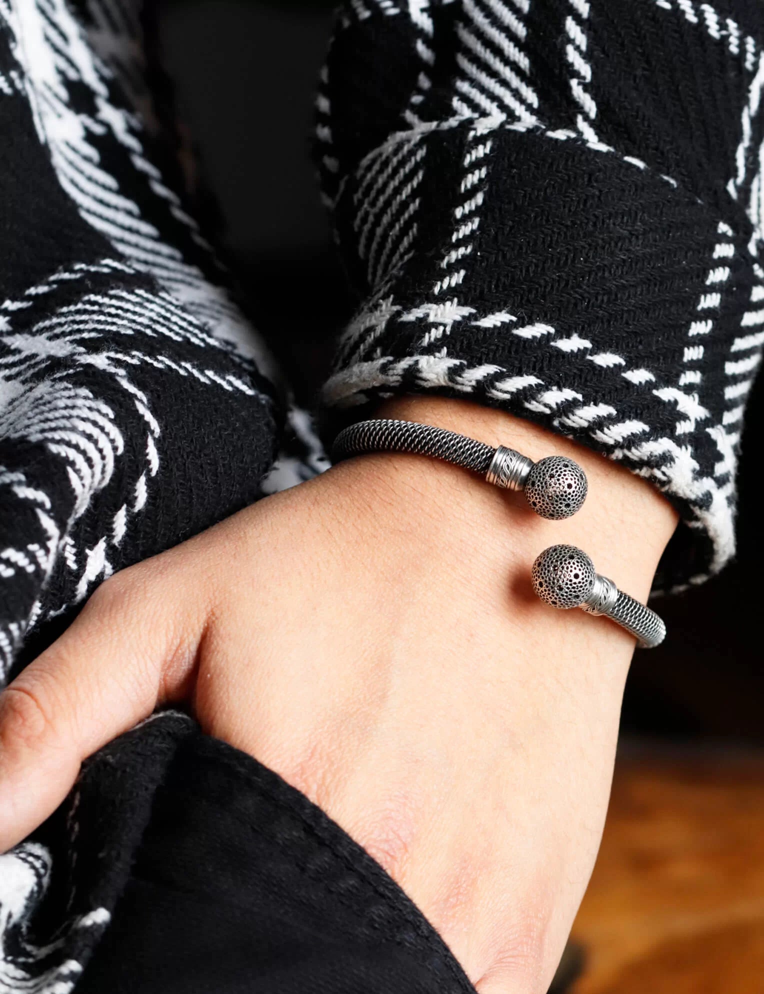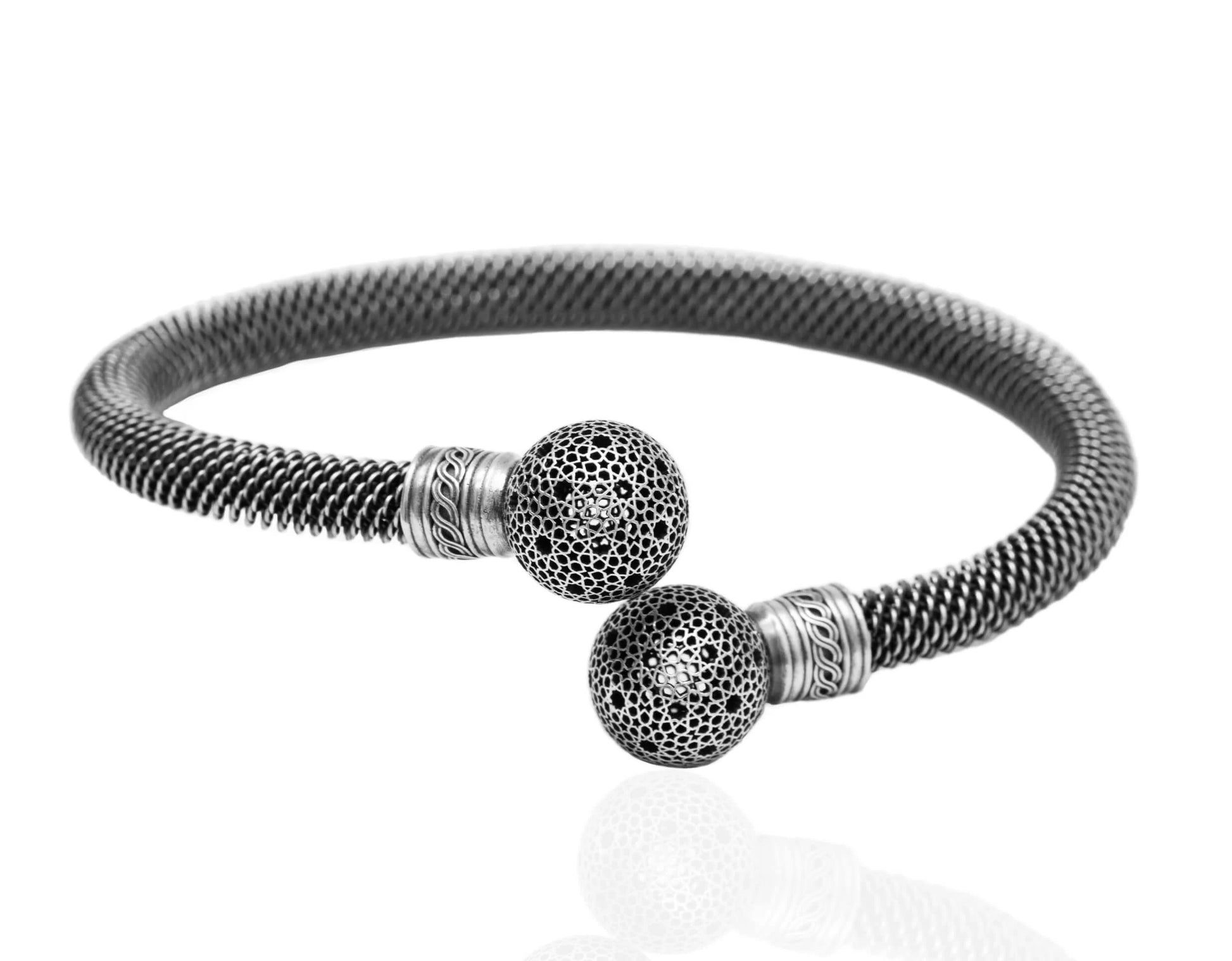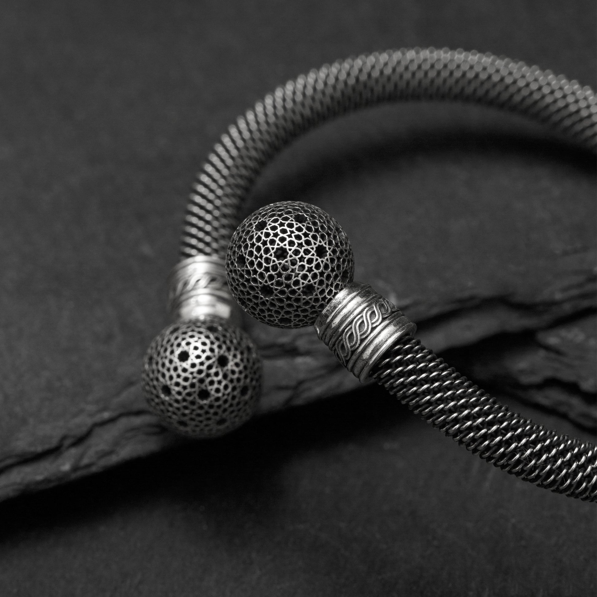 -Bileklik 925 ayar gümüş teller ile elde örülmüştür.