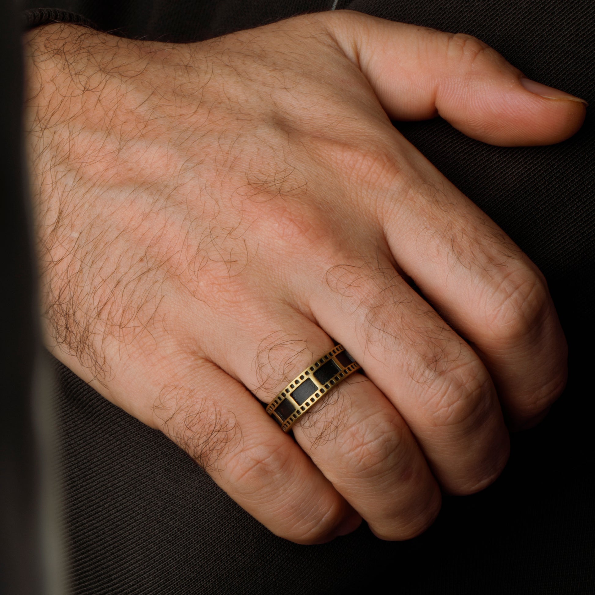Sinefili Koleksiyonu için film şeridi şeklinde tasarlanmış minimal,sade bir yüzüktür.