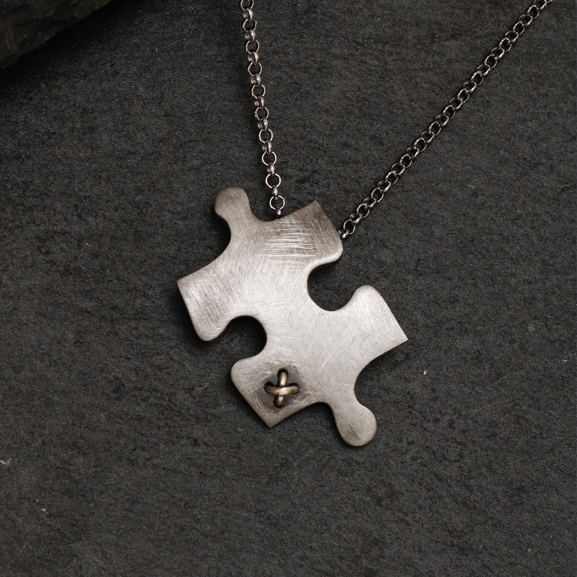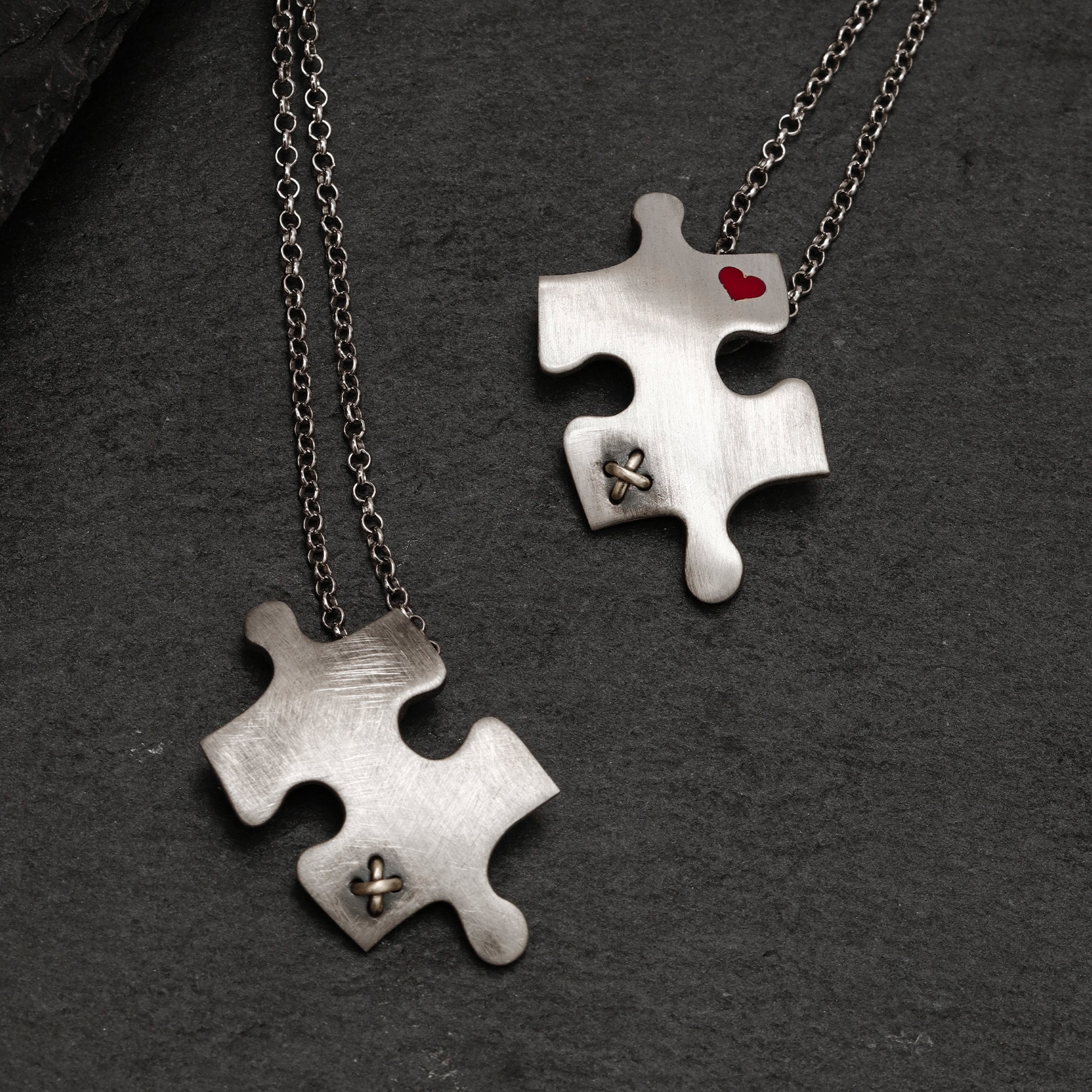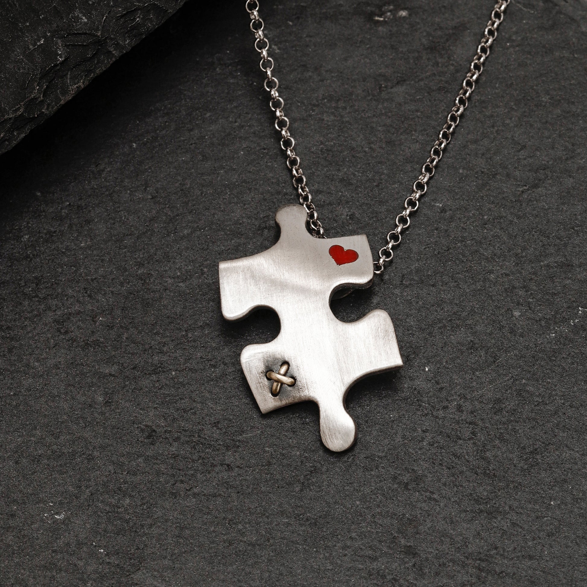 Oyuncak ayı kolyesinin tamamlayıcı unsuru olan bu yapboz gümüş kolye, Sevgililer Günü için özel bir hediye seçeneği sunuyor. Kişiselleştirilebilen bu gümüş kolye, istenilen sembol veya isimle özel bir dokunuş kazanıyor.